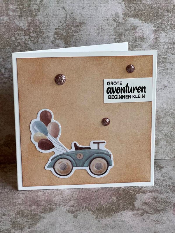 Deze 2 schattige kaartjes met een gekleurde achtergrond, gemaakt met distress ink, en leuke plaatjes zijn in 1 koop te koop. Deze zijn toepasselijk voor een kinder verjaardag en geboorte.