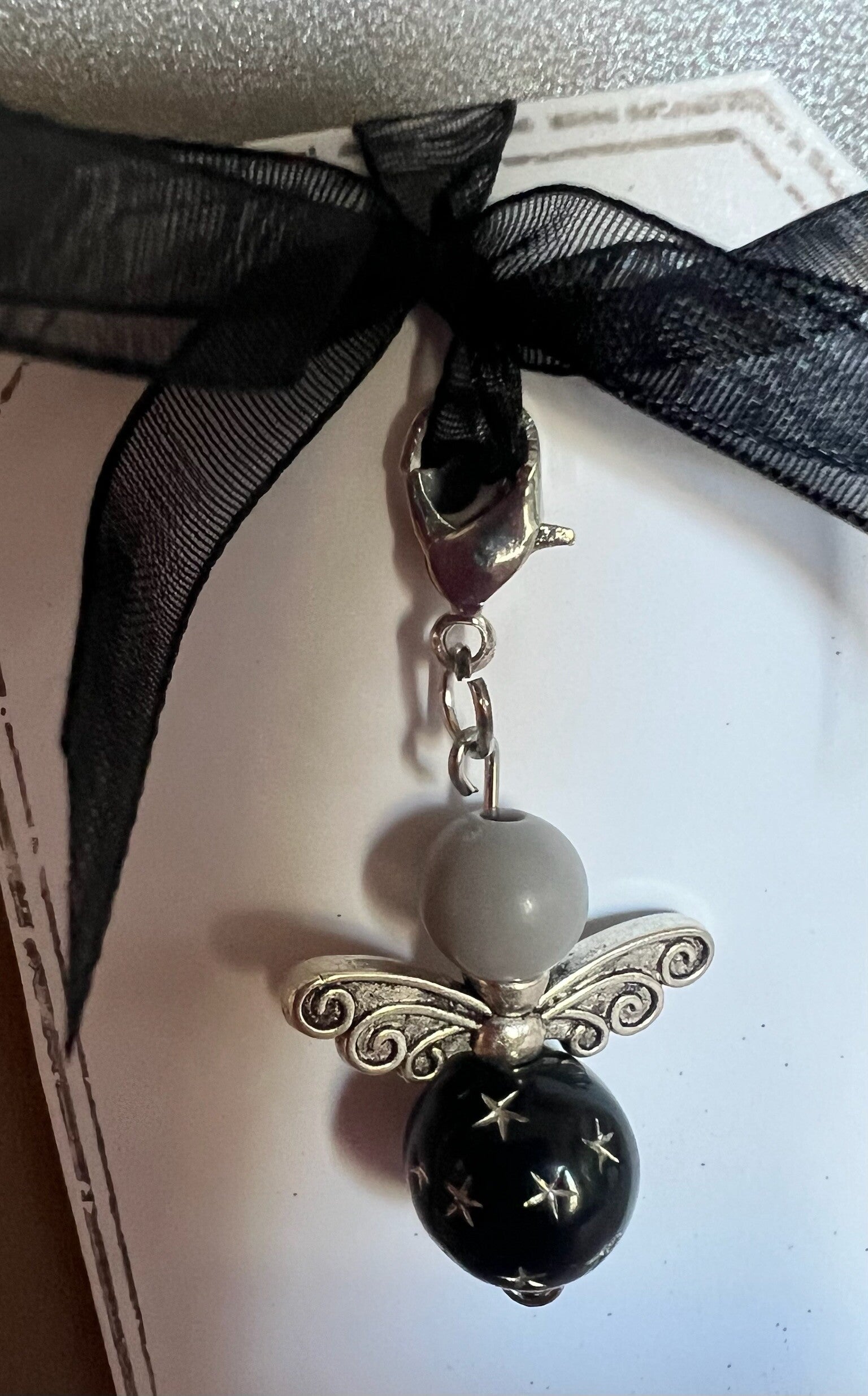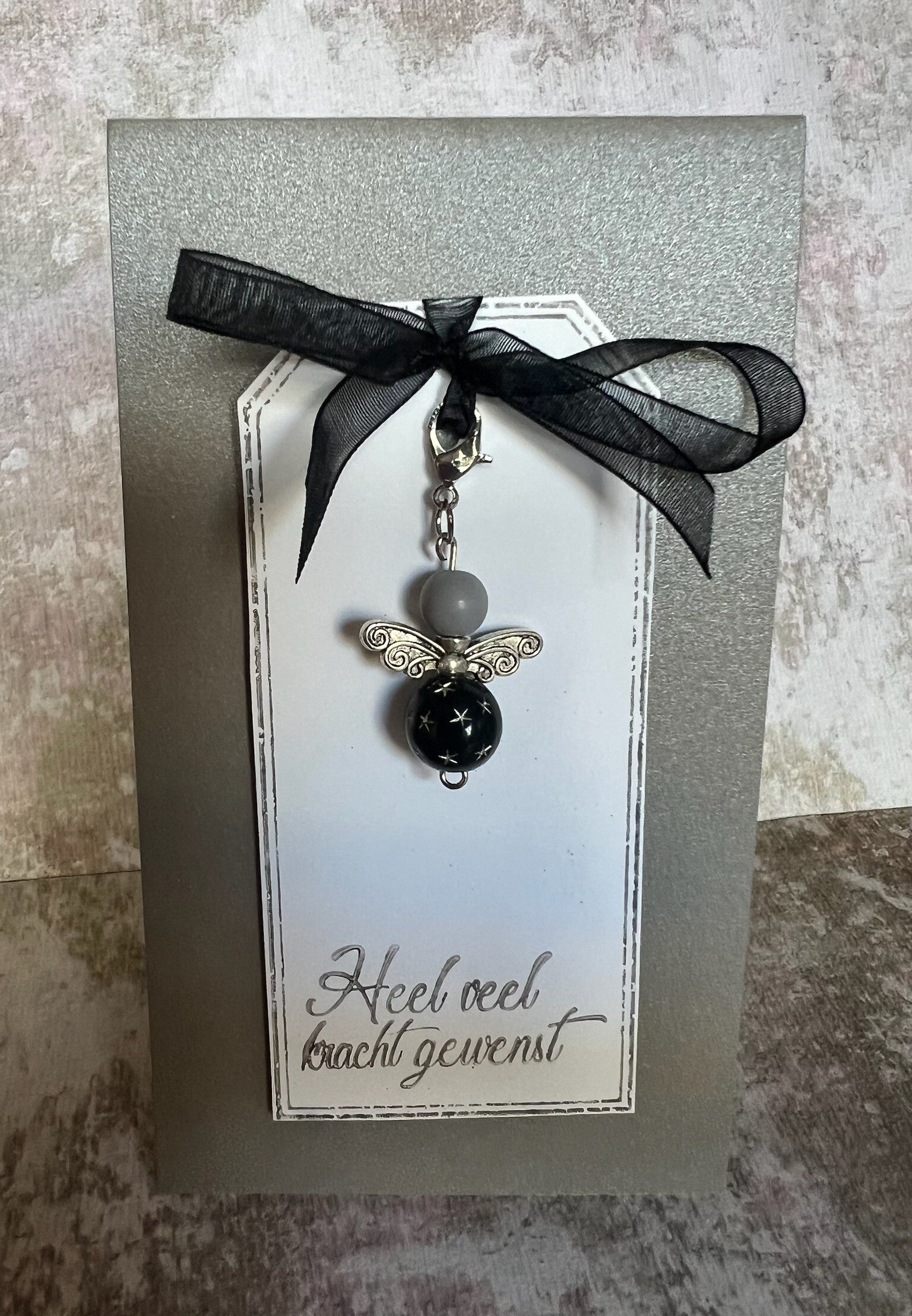 Aan dit kleine kaartje hangt een (Wens) engeltje met sluiting, zodat je het ergens aan kunt hangen, met de tekst:"Heel veel kracht gewenst". Voor iemand die het even nodig heeft.